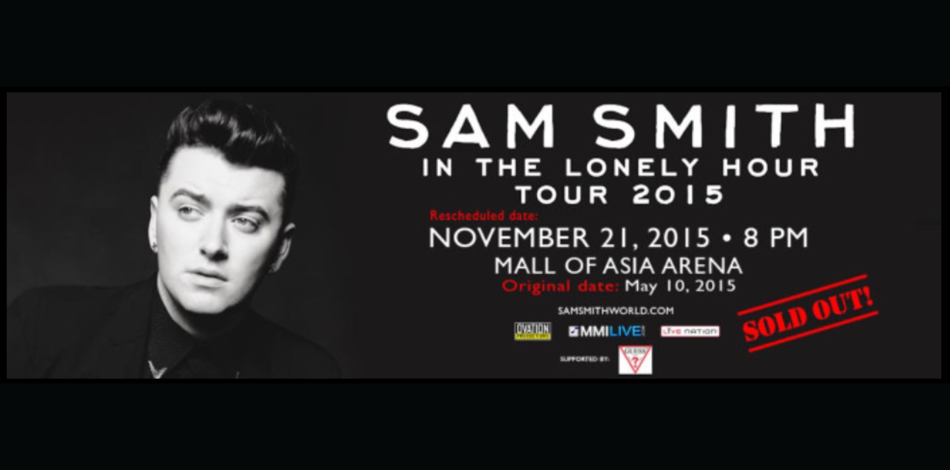 Sam Smith's 'In the Lonely Hour' Tour concert in the Philippines was held on November 21, 2015, at the Mall of Asia Arena.